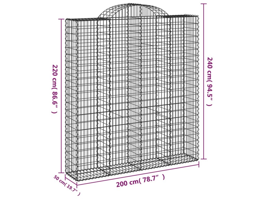vidaXL Oblúkový gabionový kôš 2 ks 200x50x220/240cm pozinkované železo