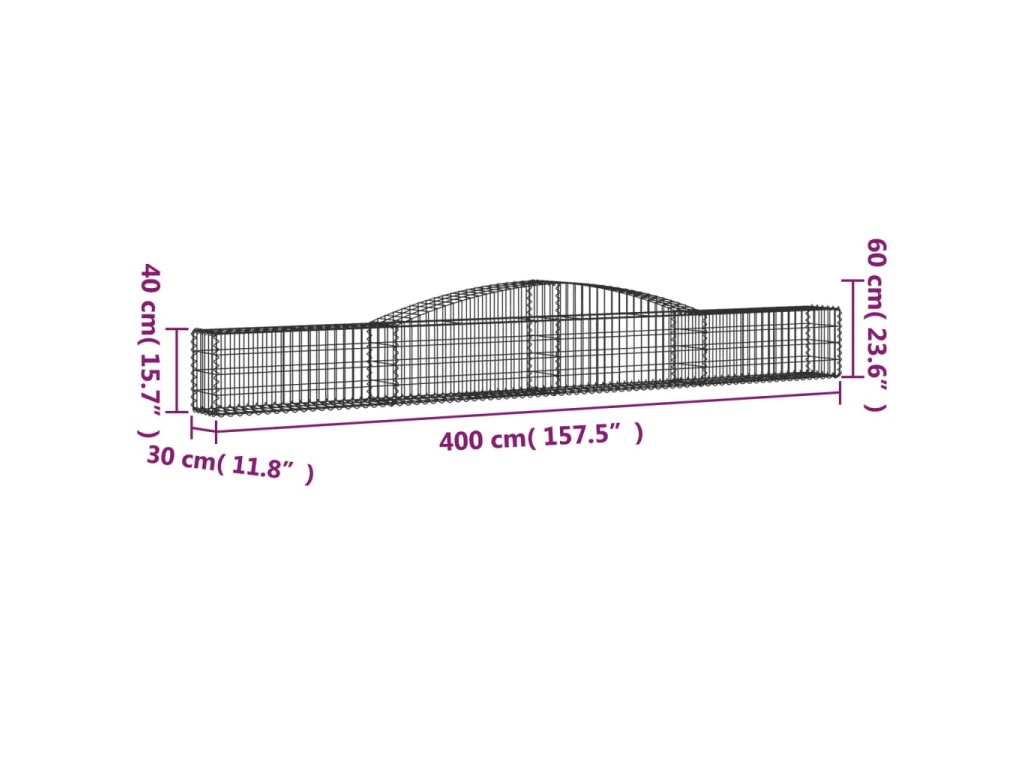 vidaXL Oblúkový gabionový kôš 2 ks 400x30x40/60 cm pozinkované železo