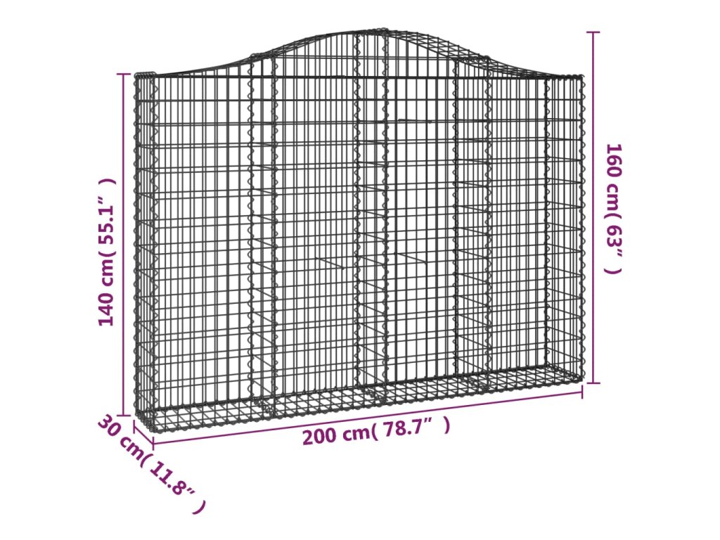 vidaXL Oblúkový gabionový kôš 200x30x140/160 cm pozinkované železo