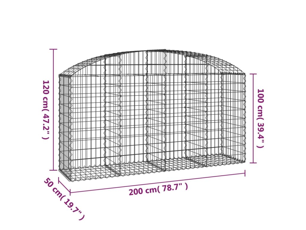 vidaXL Oblúkový gabionový kôš 200x50x100/120 cm pozinkované železo