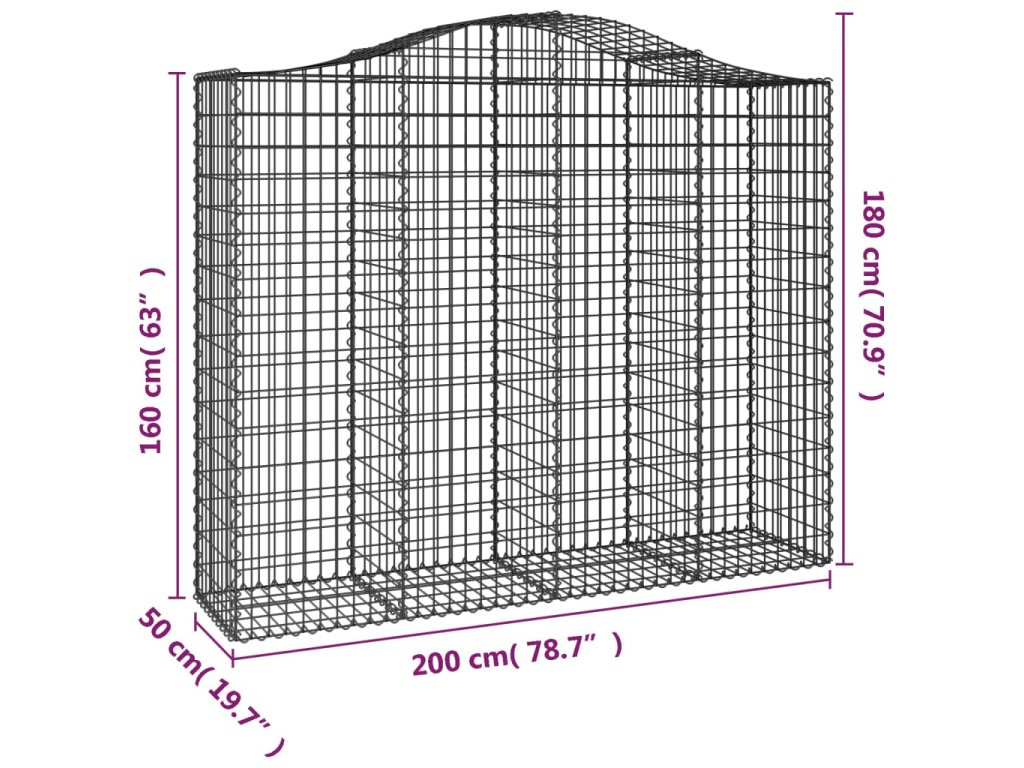 vidaXL Oblúkový gabionový kôš 200x50x160/180 cm pozinkované železo