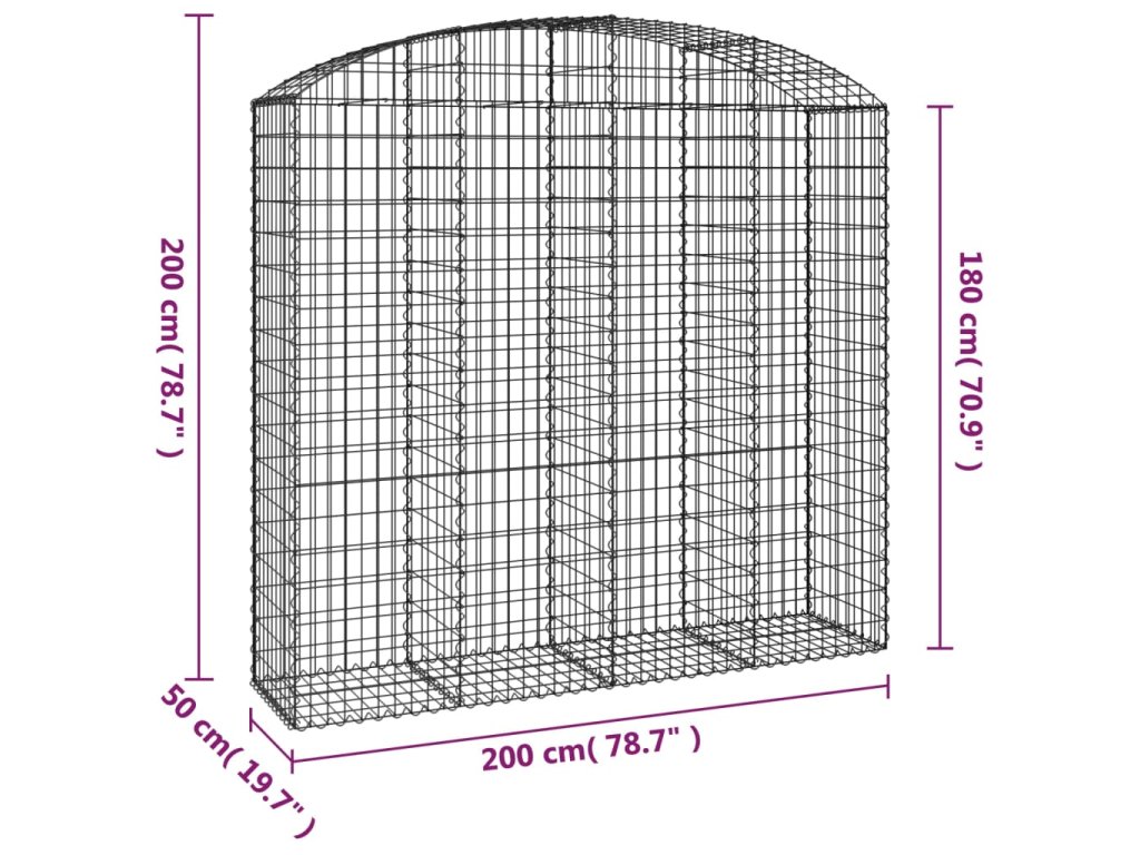 vidaXL Oblúkový gabionový kôš 200x50x180/200 cm pozinkované železo