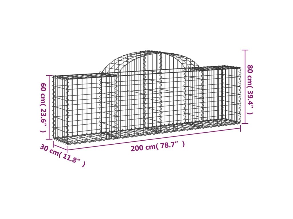 vidaXL Oblúkový gabionový kôš 3 ks 200x30x60/80 cm pozinkované železo