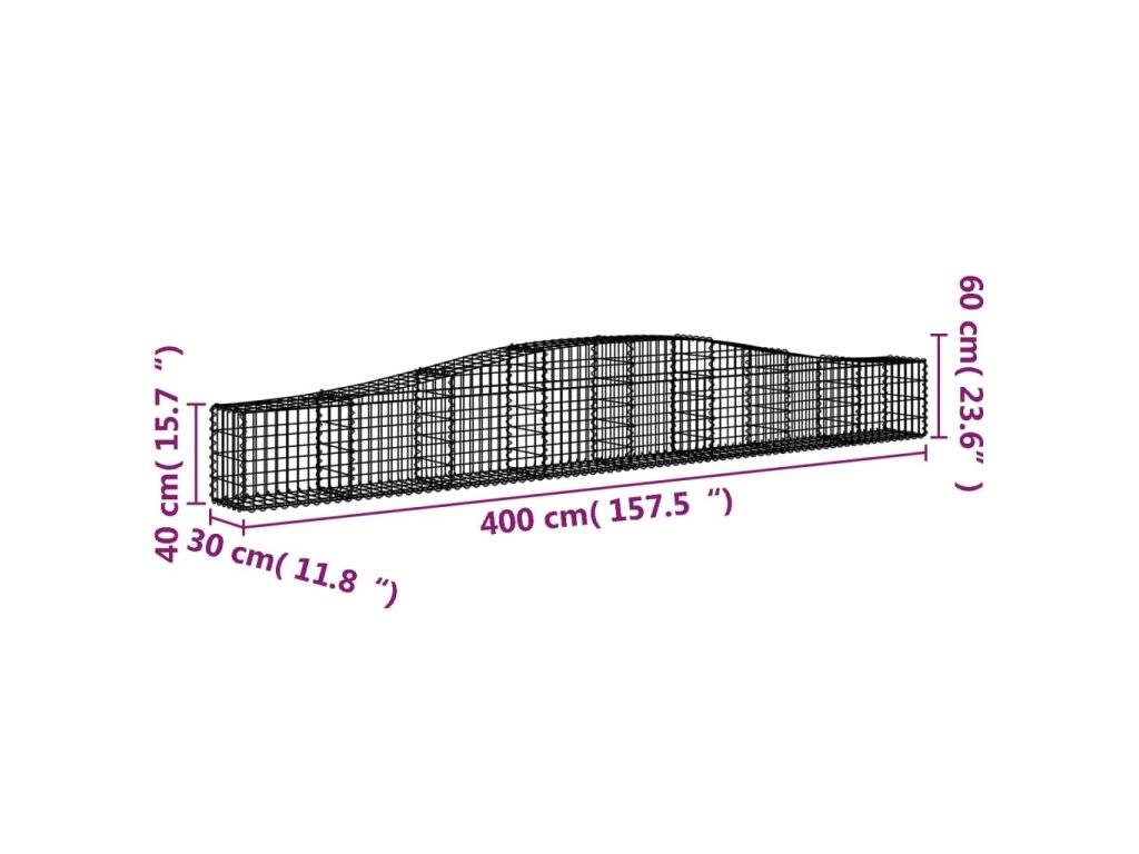 vidaXL Oblúkový gabionový kôš 3 ks 400x30x40/60 cm pozinkované železo