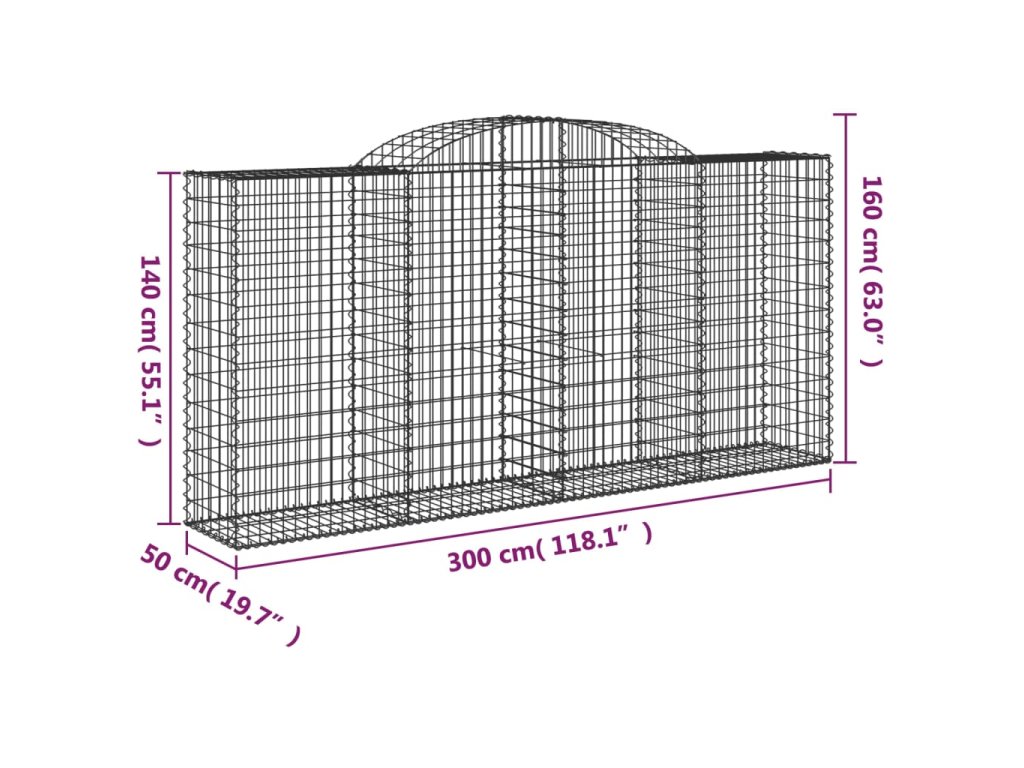 vidaXL Oblúkový gabionový kôš 300x50x140/160 cm pozinkované železo