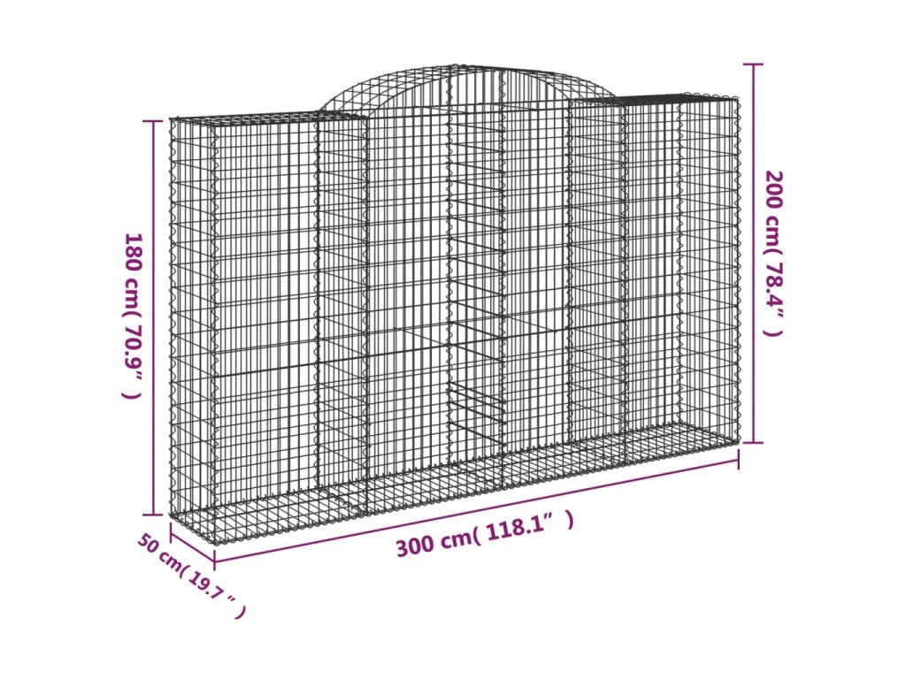 vidaXL Oblúkový gabionový kôš 300x50x180/200 cm pozinkované železo