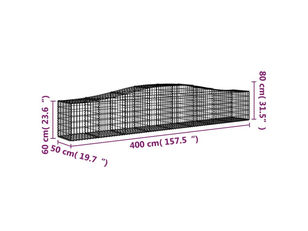 vidaXL Oblúkový gabionový kôš 4 ks 400x50x60/80 cm pozinkované železo