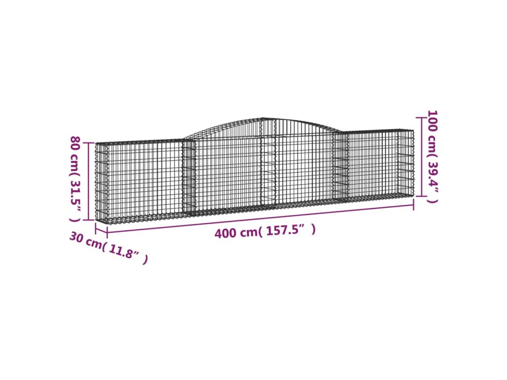 vidaXL Oblúkový gabionový kôš 400x30x180/200 cm pozinkované železo