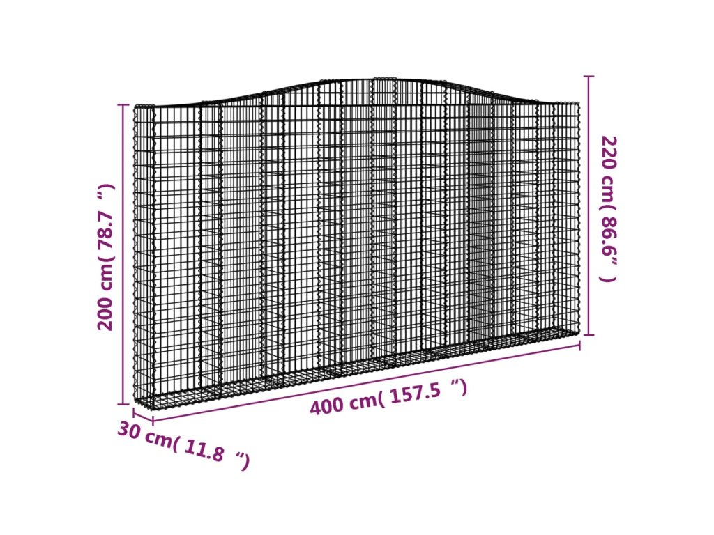 vidaXL Oblúkový gabionový kôš 400x30x200/220 cm pozinkované železo