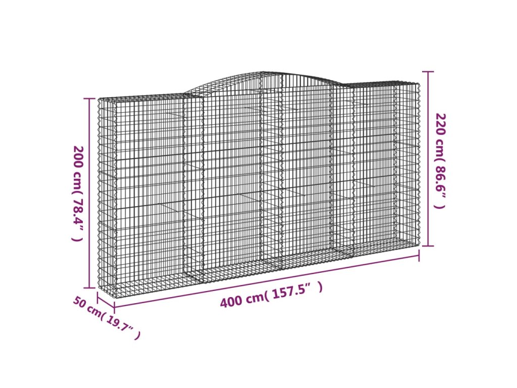 vidaXL Oblúkový gabionový kôš 400x50x200/220 cm pozinkované železo