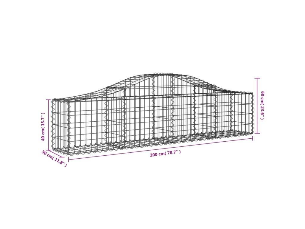 vidaXL Oblúkový gabionový kôš 6 ks 200x30x40/60 cm pozinkované železo