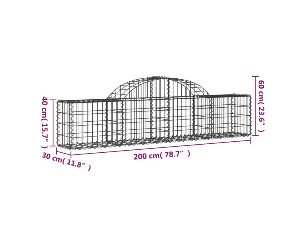 vidaXL Oblúkový gabionový kôš 7 ks 200x30x40/60 cm pozinkované železo