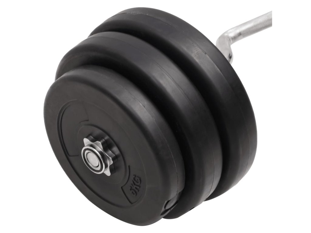 - Hmotnosť závaží: 4 x 5 kg, 2 x 7,5 kg, 2 x 10 kg, 2 x 15 kg