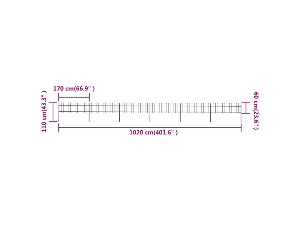 vidaXL Oceľový záhradný plot so špicatými vrchmi 10,2x0,6 m čierny