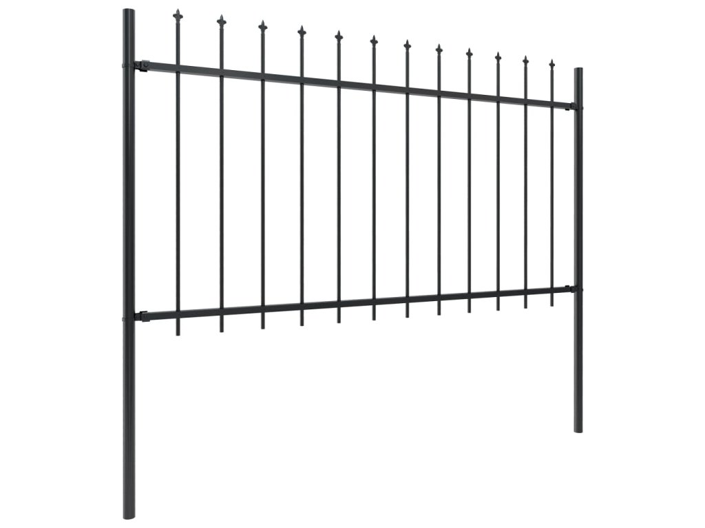 vidaXL Oceľový záhradný plot so špicatými vrchmi čierny 10,2x1 m