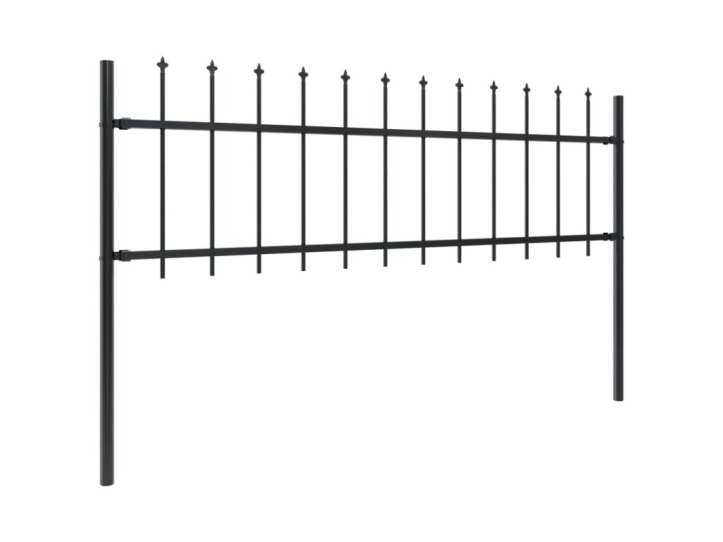 vidaXL Oceľový záhradný plot so špicatými vrchmi čierny 13,6x0,6 m