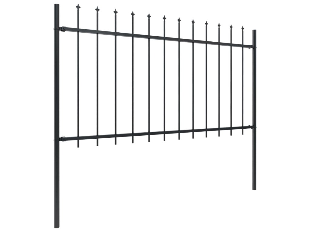 vidaXL Oceľový záhradný plot so špicatými vrchmi čierny 13,6x1 m