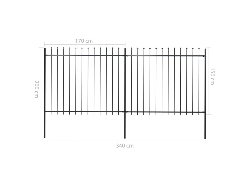 vidaXL Oceľový záhradný plot so špicatými vrchmi čierny 3,4x1,5 m