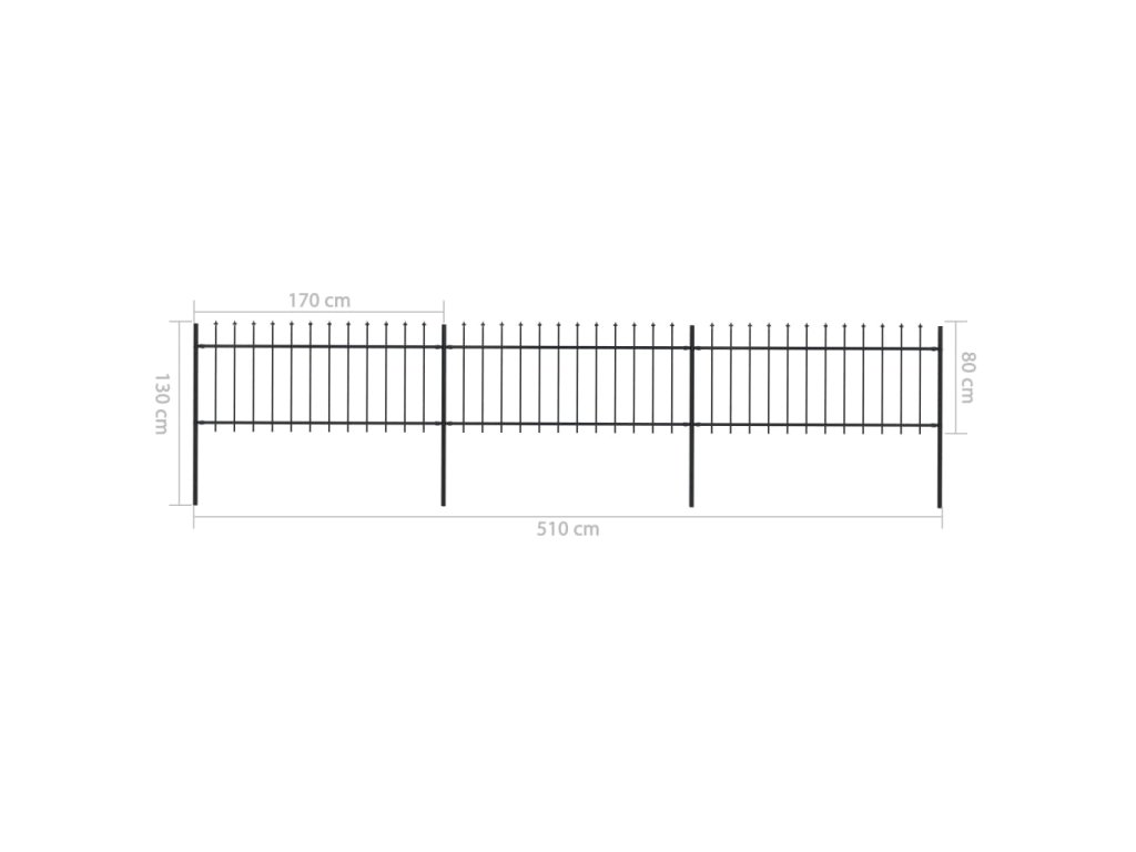 vidaXL Oceľový záhradný plot so špicatými vrchmi čierny 5,1-0,8 m