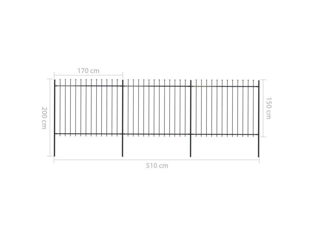 vidaXL Oceľový záhradný plot so špicatými vrchmi čierny 5,1x1,5 m
