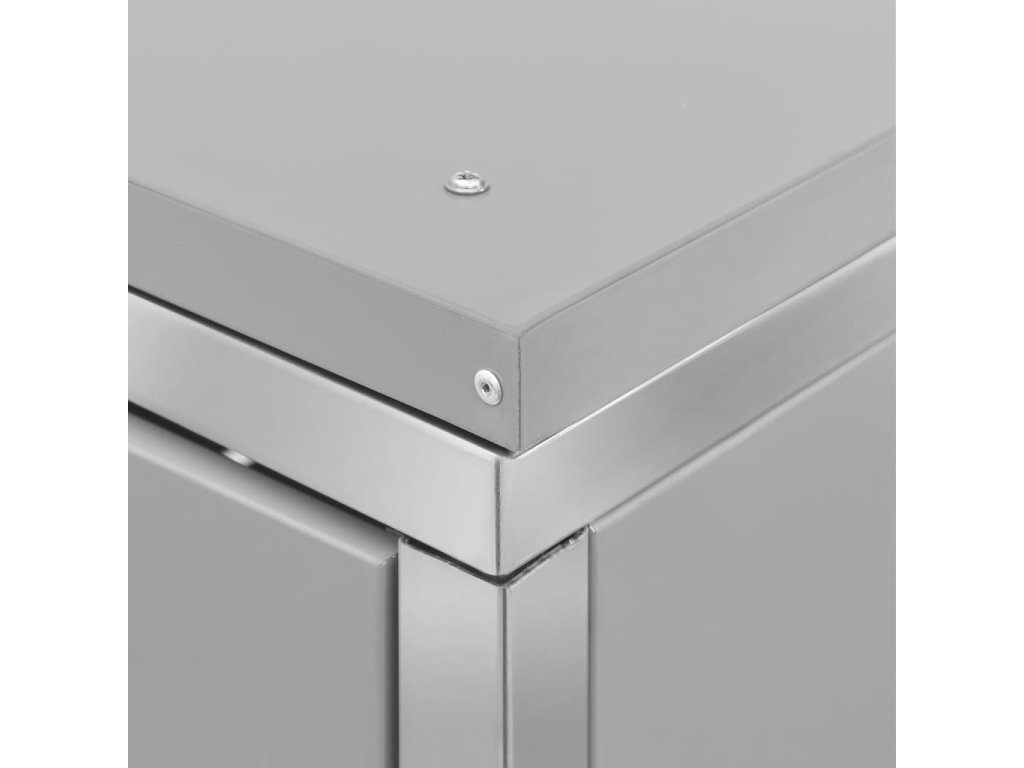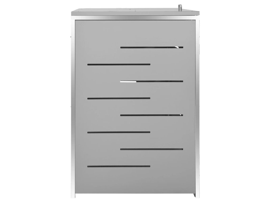 Tento prístrešok na odpadky je vyrobený z pozinkovaného oceľového panelu a rámu z nehrdzavejúcej ocele, vďaka čomu je mimoriadne robustný a odolný proti korózii. Konštrukcia umožňuje cirkuláciu vzduchu a zabraňuje vzniku nepríjemných pachov v odpadkovom boxe, zatiaľ čo uzamykací systém zabezpečuje bezpečné uloženie odpadu. Okrem toho, vkladanie a vyberanie odpadkového koša vám uľahčí praktické veko a pružiny.