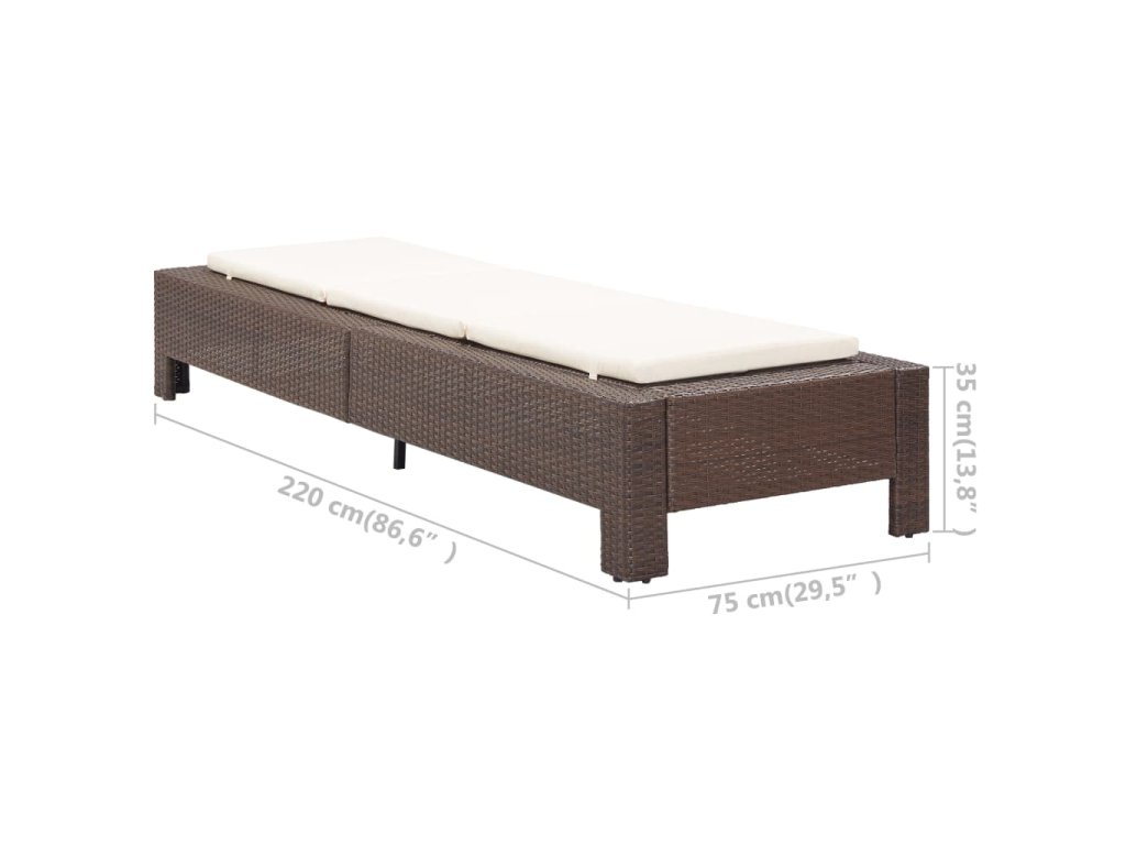 vidaXL Opaľovacie lehátko s vankúšom hnedé polyratanové