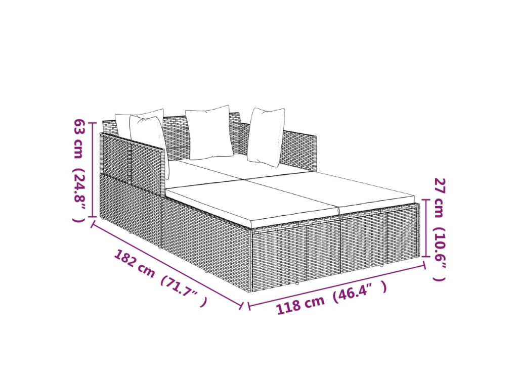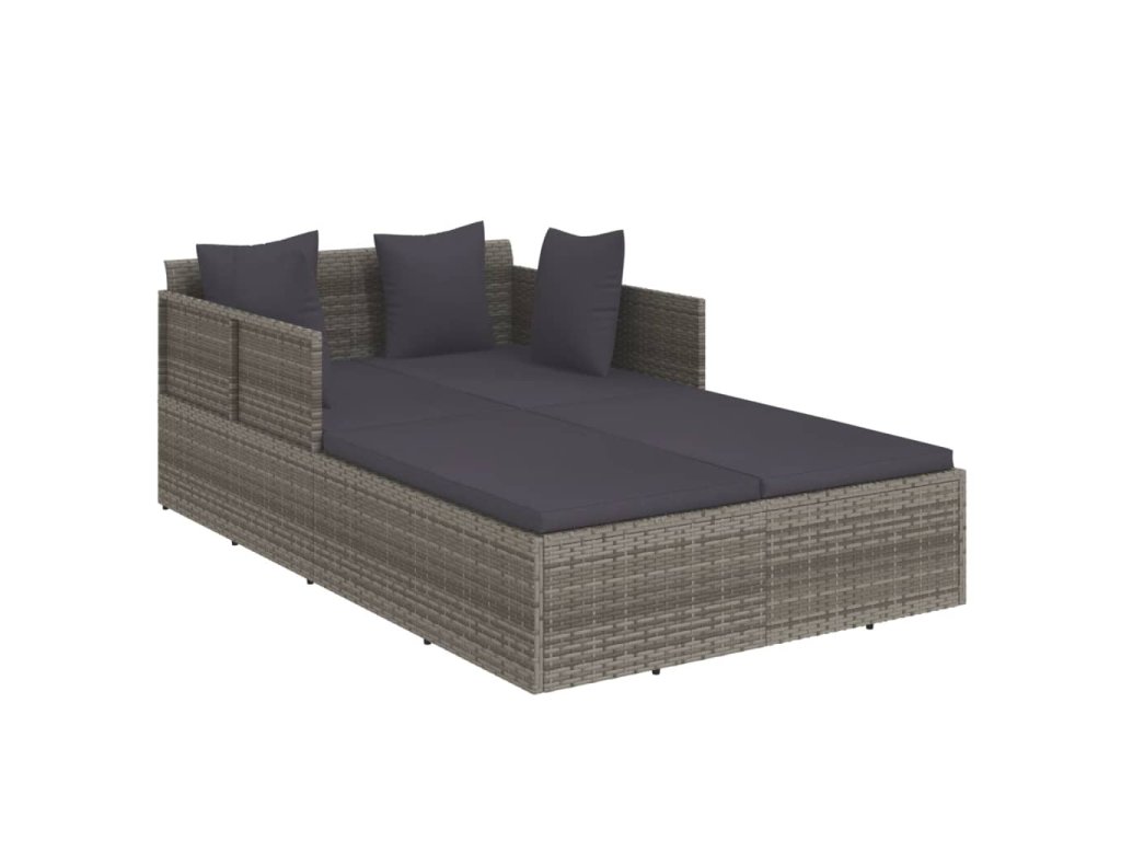 vidaXL Opaľovacie lehátko s vankúšom sivé 182x118x63 polyratan