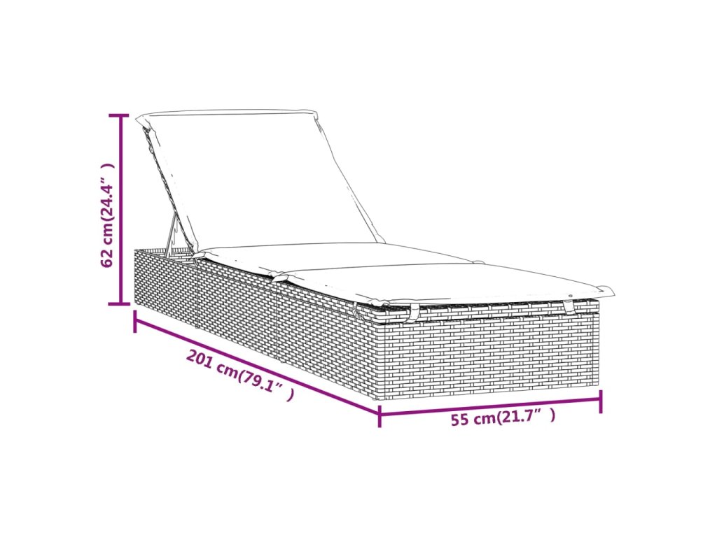 vidaXL Opaľovacie lehátko s vankúšom sivé 201x55x62 polyratan