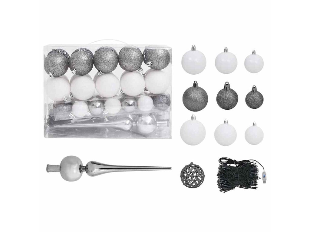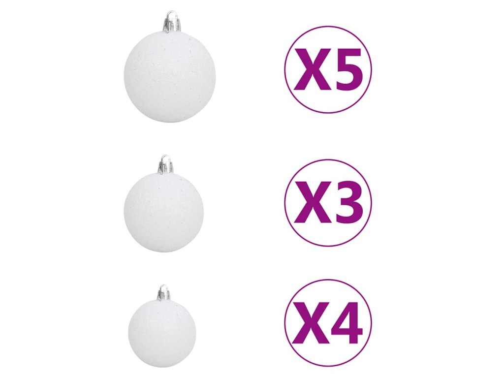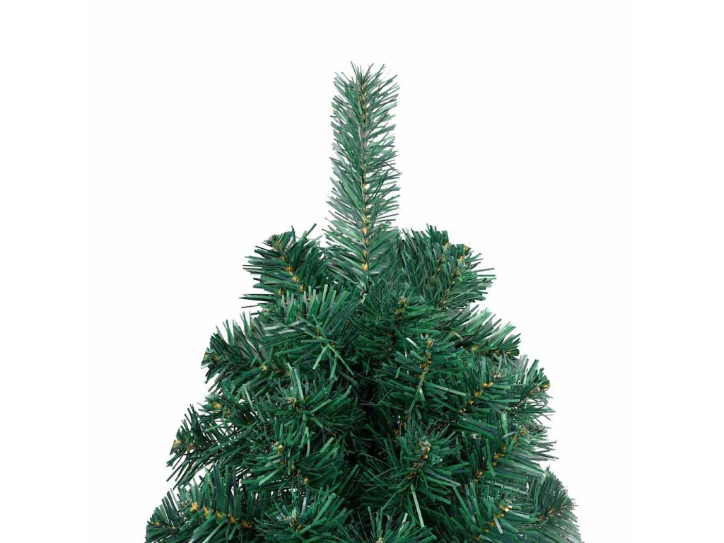 Tento krásny vianočný stromček vyrobený z PVC materiálu je svojím tvarom a vzhľadom veľmi realistický. Oceľové nožičky mu dodávajú stabilitu. Tento umelý stromček je možné umiestniť k stene, čím ušetríte viac miesta. Vianočný stromček je možné použiť aj každý rok, čo z neho robí veľmi ekonomickú voľbu v porovnaní so skutočným stromčekom. Vďaka energeticky účinným LED svetlám sa krásne rozsvieti a vytvorí príjemnú prázdninovú atmosféru. Navyše, ozdobený krásnym štítom a guľami, bude tento vianočný stromček vo vašej domácnosti pôsobiť veľmi pútavo.