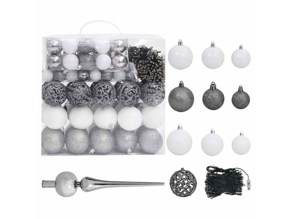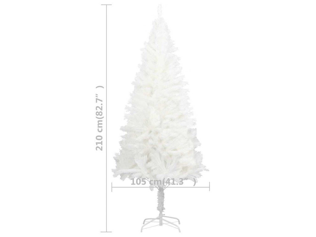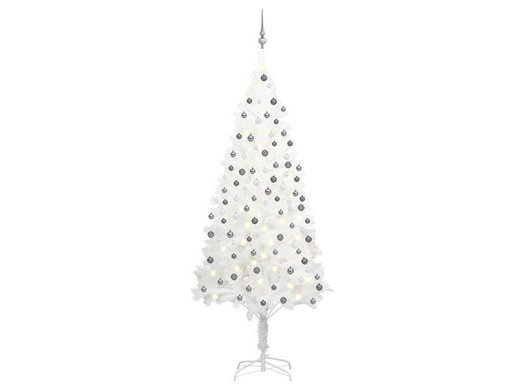 vidaXL Osvetlený umelý vianočný stromček s guľami, biely 210 cm