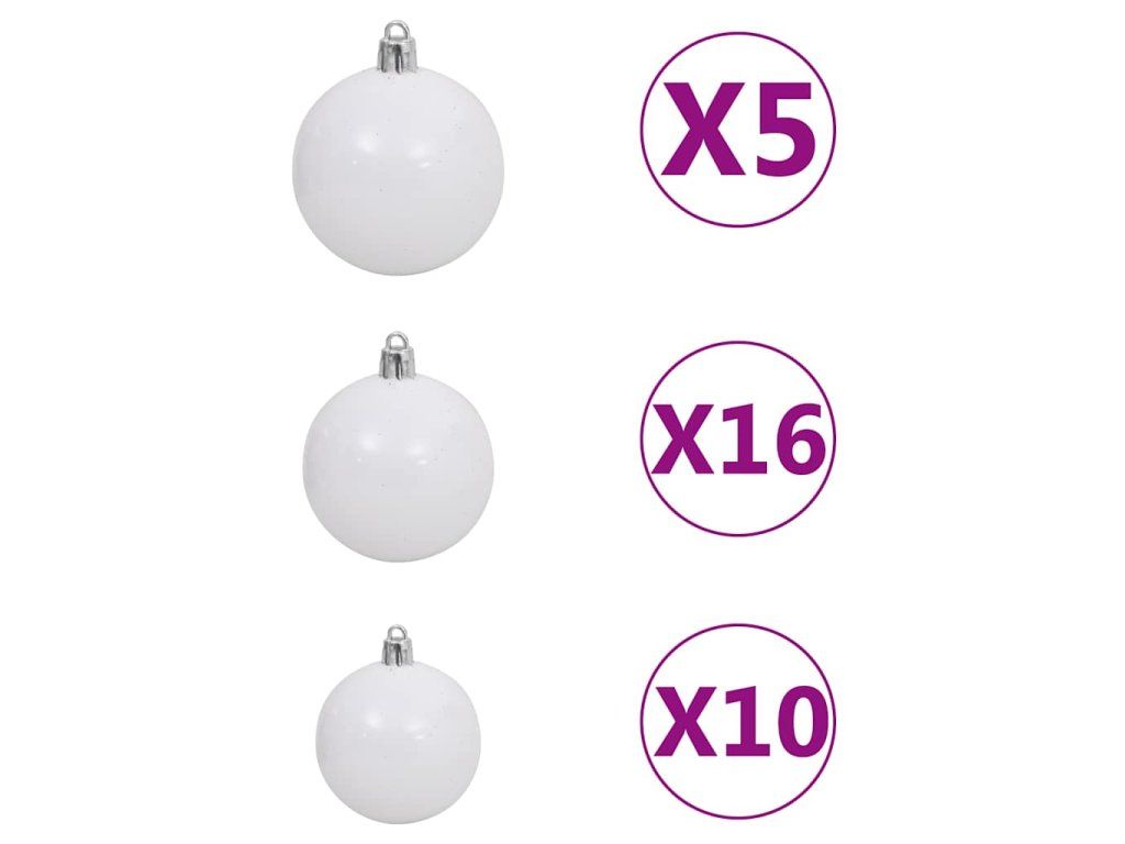 Tento vianočný stromček vyrobený z PVC materiálu má veľmi realistický tvar a vzhľad. Oceľové nožičky zvyšujú jeho stabilitu. Vianočný stromček sa môže opätovne používať každý rok, čo z neho robí veľmi úspornú voľbu v porovnaní so živým stromčekom. Vďaka energeticky úsporným LED svetlám sa krásne rozsvieti a vytvorí útulnú sviatočnú atmosféru. Ozdobený krásnym vrcholcom a guľami bude tento vianočný stromček vo vašej domácnosti pútať pozornosť.