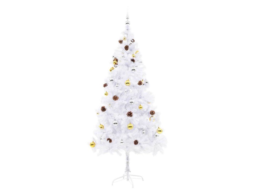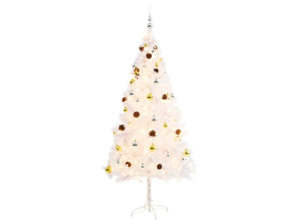 vidaXL Osvetlený umelý vianočný stromček s ozdobami, biely 180 cm