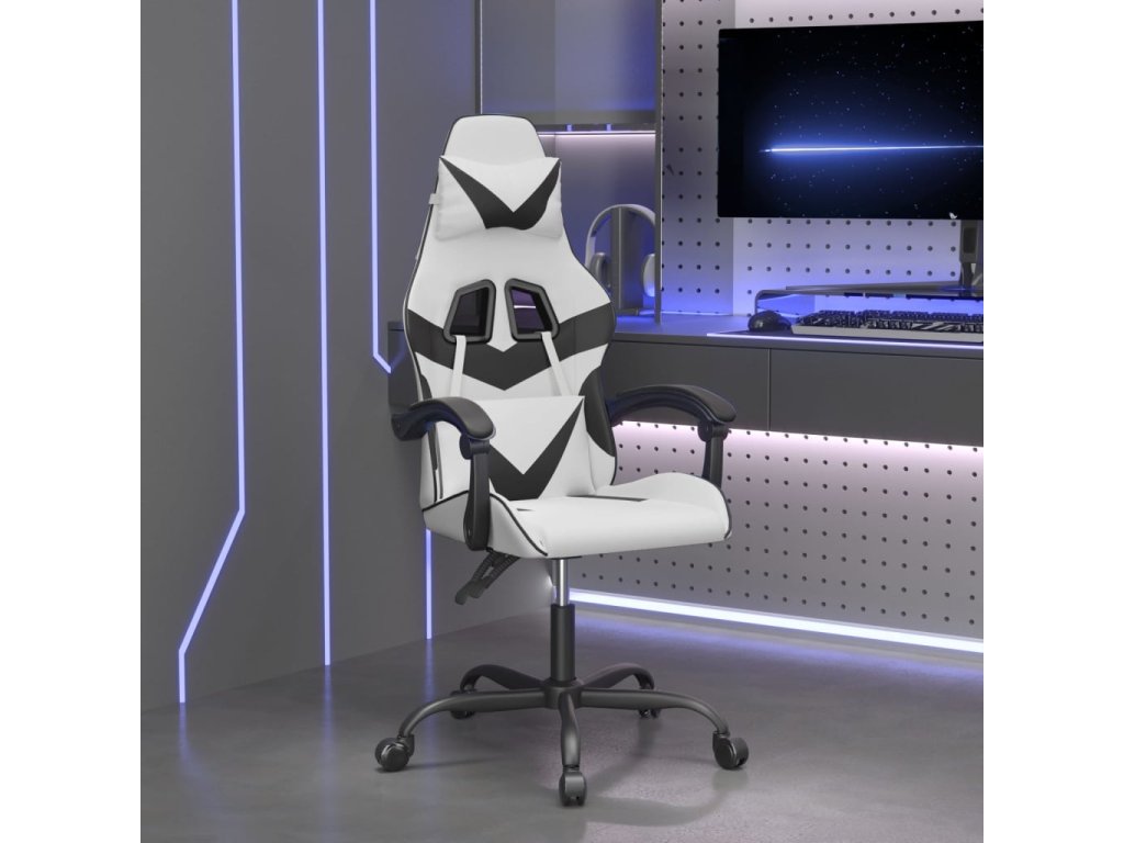 vidaXL Otočná herná stolička biela a čierna umelá koža