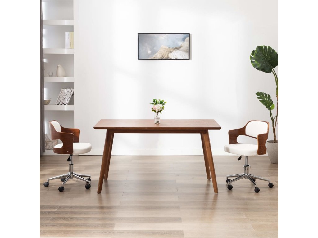 vidaXL Otočné jedálenské stoličky 2ks biele ohýbané drevo a umelá koža