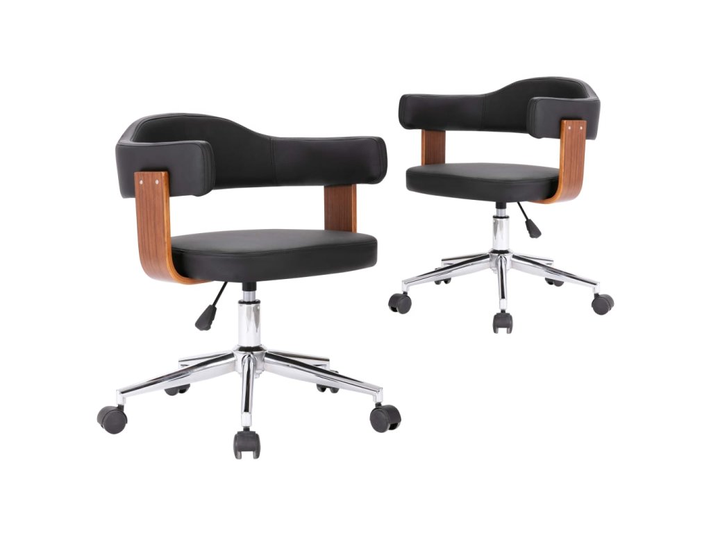 vidaXL Otočné jedálenské stoličky 2ks,čierne, ohýbané drevo+umelá koža