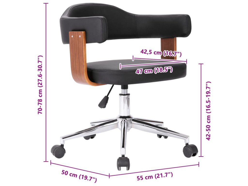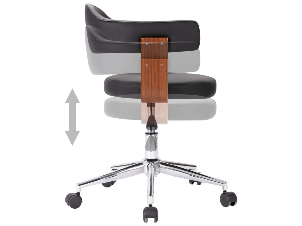 Poskytuje optimálne pohodlie pre vaše rodinné večere, na čítanie alebo odpočinok v obývacej izbe. Sedadlo a operadlo sú ergonomicky navrhnuté a sú čalúnené jemnou umelou kožou, vďaka čomu je stolička mimoriadne pohodlná. Vďaka drevenému rámu a oceľovým nohám je stolička trvácna. Stolička je otočná o 360 stupňov. Plynový zdvíhací mechanizmus umožňuje nastaviť výšku.