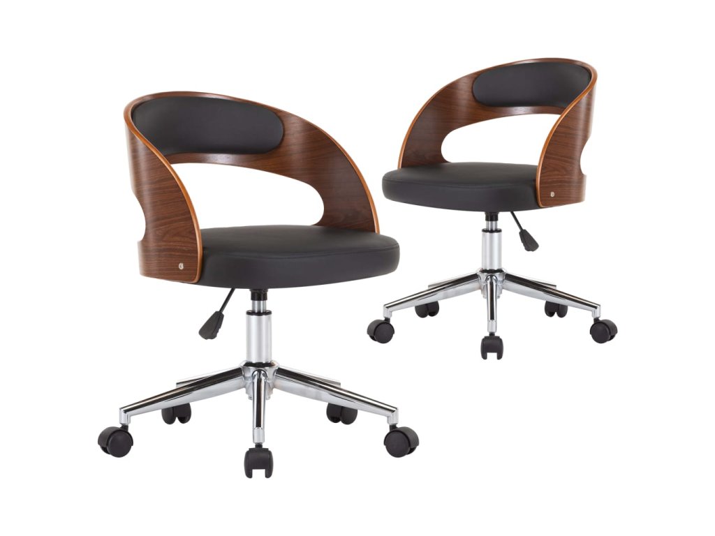 vidaXL Otočné jedálenské stoličky 2ks,čierne, ohýbané drevo+umelá koža