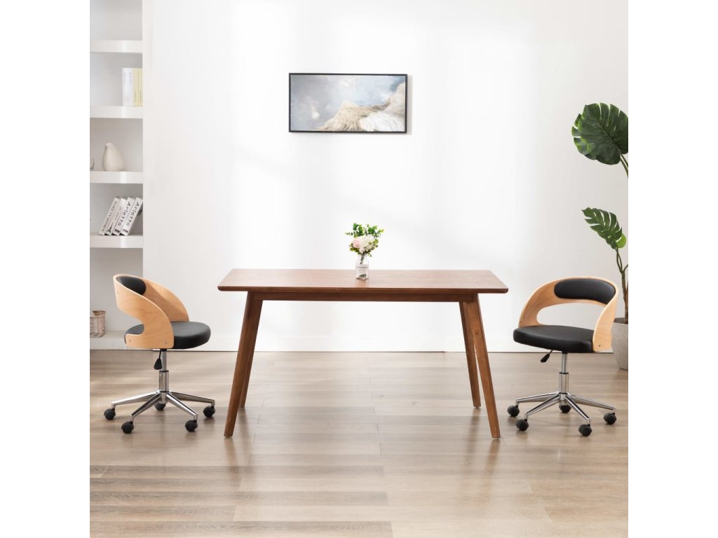 vidaXL Otočné jedálenské stoličky 2ks,čierne, ohýbané drevo+umelá koža
