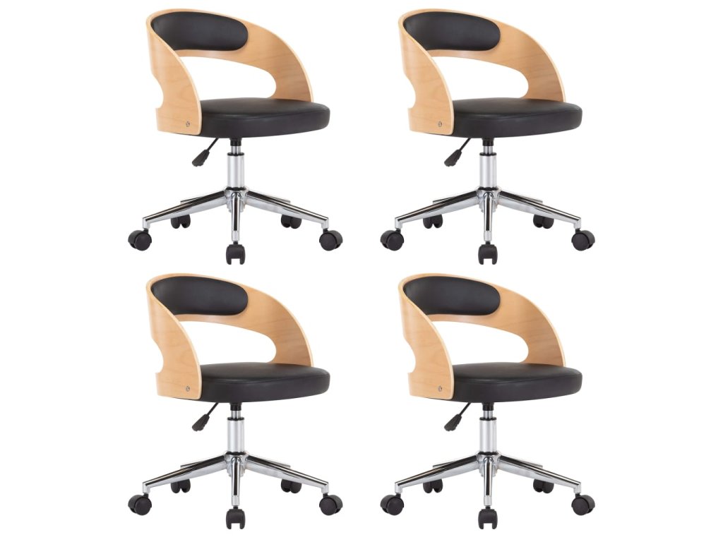 vidaXL Otočné jedálenské stoličky 4 ks čierne ohýbané drevo+umelá koža