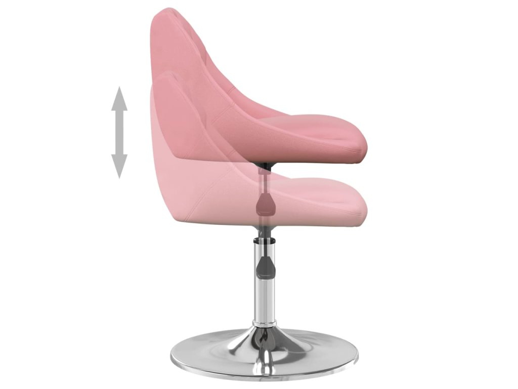 Otočné stoličky sú čalúnené zamatom mäkkým na dotyk, čo vám prinesie optimálne pohodlie počas sedenia. Chrómovaný oceľový rám zaistuje, že je stolička robustná a stabilná. Vďaka plynovému zdvíhaciemu mechanizmu sú tieto jedálenské stoličky výškovo nastaviteľné, vďaka čomu sú perfektným doplnkom do vášho jedálenského kúta. Môžu sa tiež otáčať o 360 stupňov.