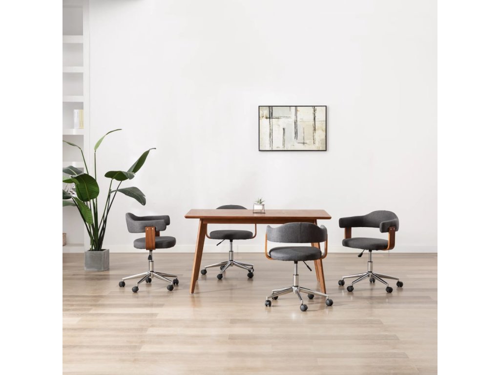 vidaXL Otočné jedálenské stoličky 4 ks sivé ohýbané drevo a látka