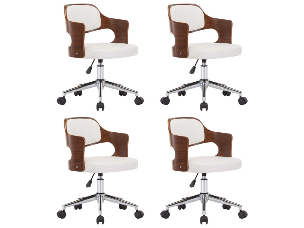 vidaXL Otočné jedálenské stoličky 4ks biele ohýbané drevo a umelá koža