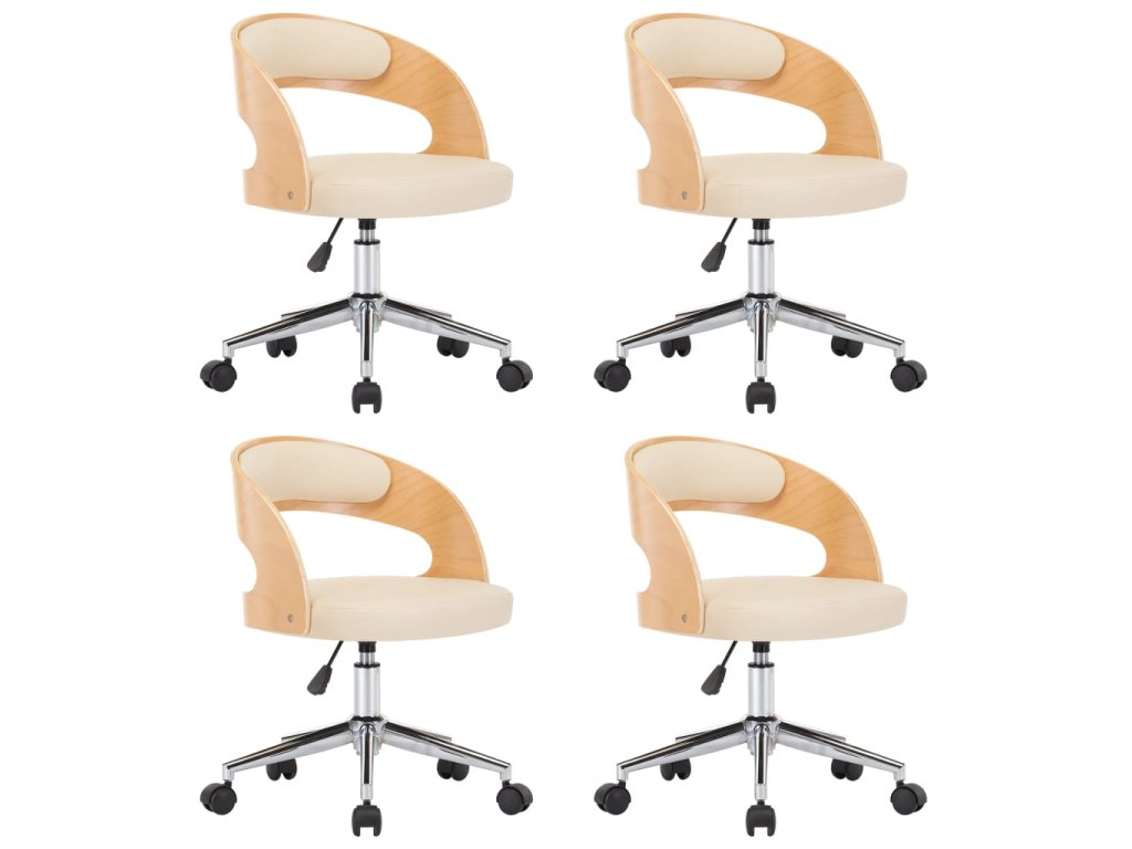 vidaXL Otočné jedálenské stoličky 4ks,krémové,ohýbané drevo+umelá koža