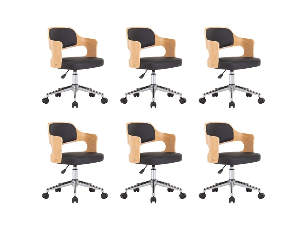 vidaXL Otočné jedálenské stoličky 6ks čierne ohýbané drevo umelá koža