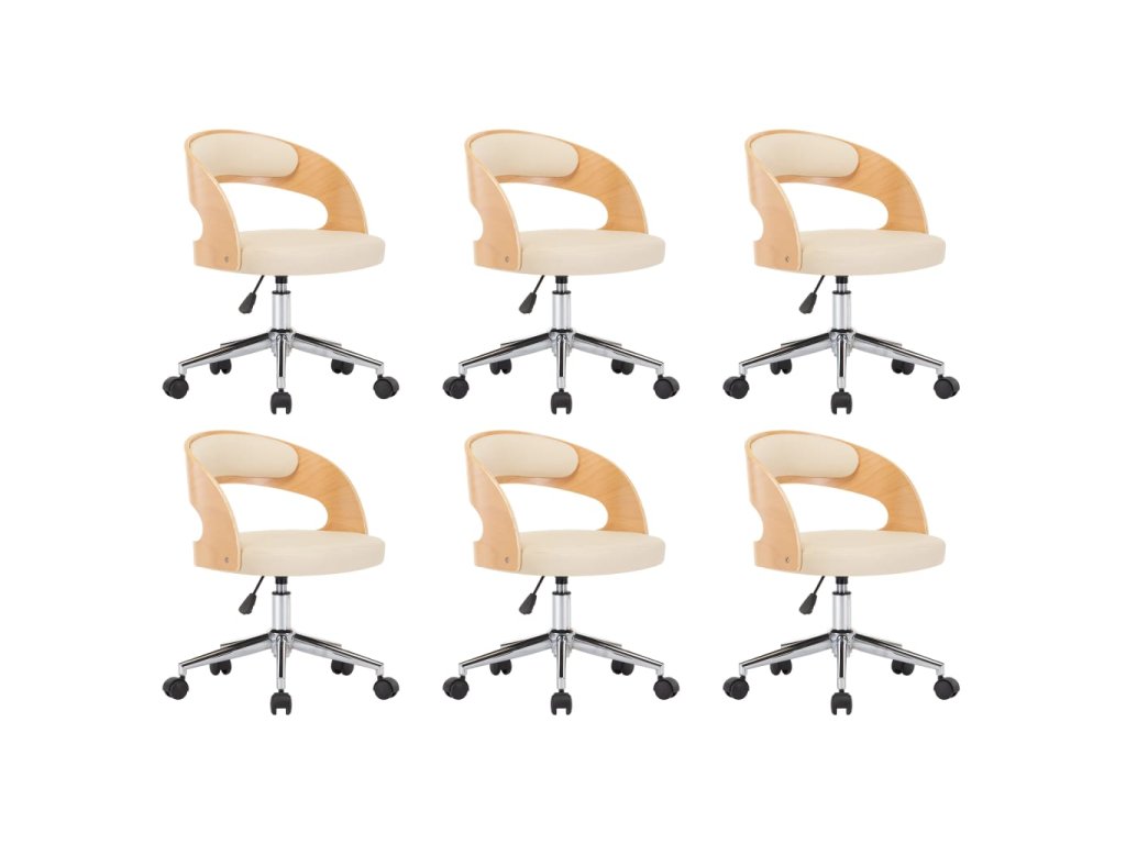 vidaXL Otočné jedálenské stoličky 6ks,krémové,ohýbané drevo+umelá koža