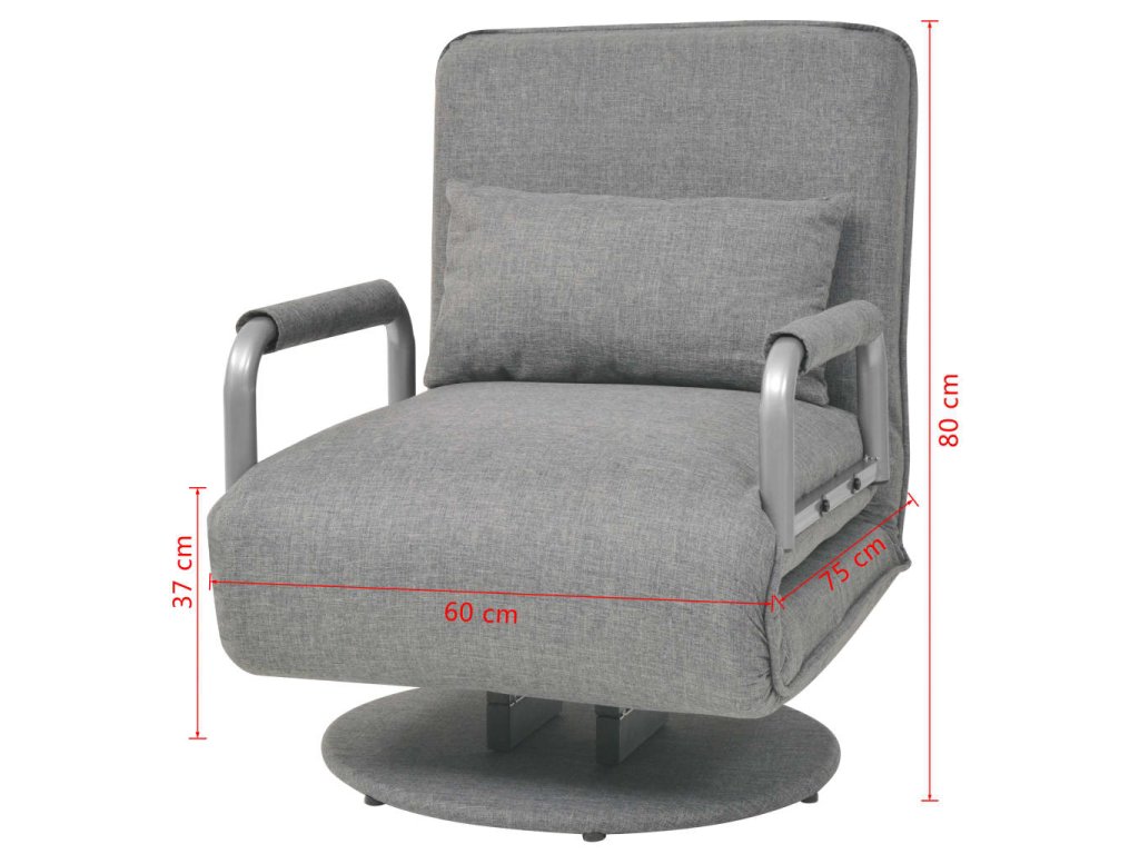 Toto multifunkčné kreslo, ktoré sa dá nastaviť do niekoľkých polôh na sedenie a ležanie, stelesňuje kombináciu pohodlia a praktického dizajnu a predstavuje skvelý doplnok do domácnosti. Otočné kreslo sa dá jednoducho premeniť na leňošku, sklápacie kreslo či rozkladaciu pohovku, a preto je ako stvorené do menších priestorov, no zíde sa vám aj v prípade, keď u vás budú chcieť prespať neočakávaní hostia.