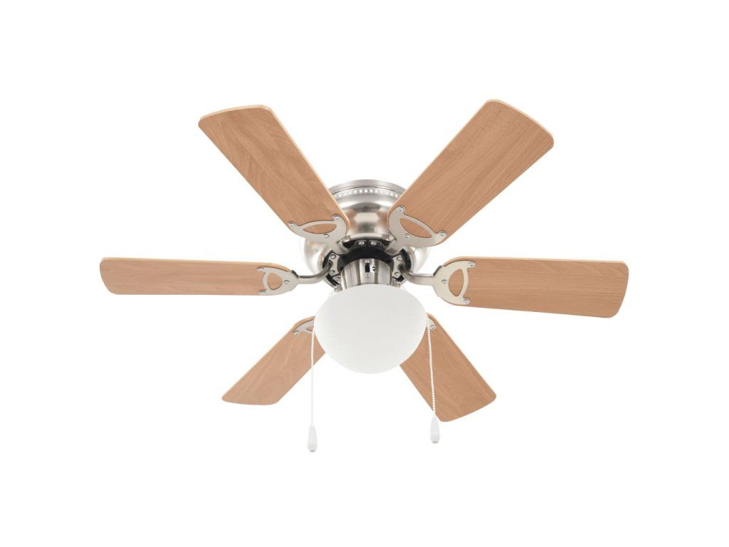 Tento veľký stropný ventilátor s celkovým priemerom 82 cm zabezpečí perfektnú cirkuláciu vzduchu v miestnosti. Ventilátor môžete ovládať ťahaním šnúrky. Rýchlosť môže byť nastavená v troch rôznych úrovniach. So vstavanou lampou stropný ventilátor osvetlí miestnosť a vytvorí príjemné prostredie v obytnom priestore. Montáž je jednoduchá.