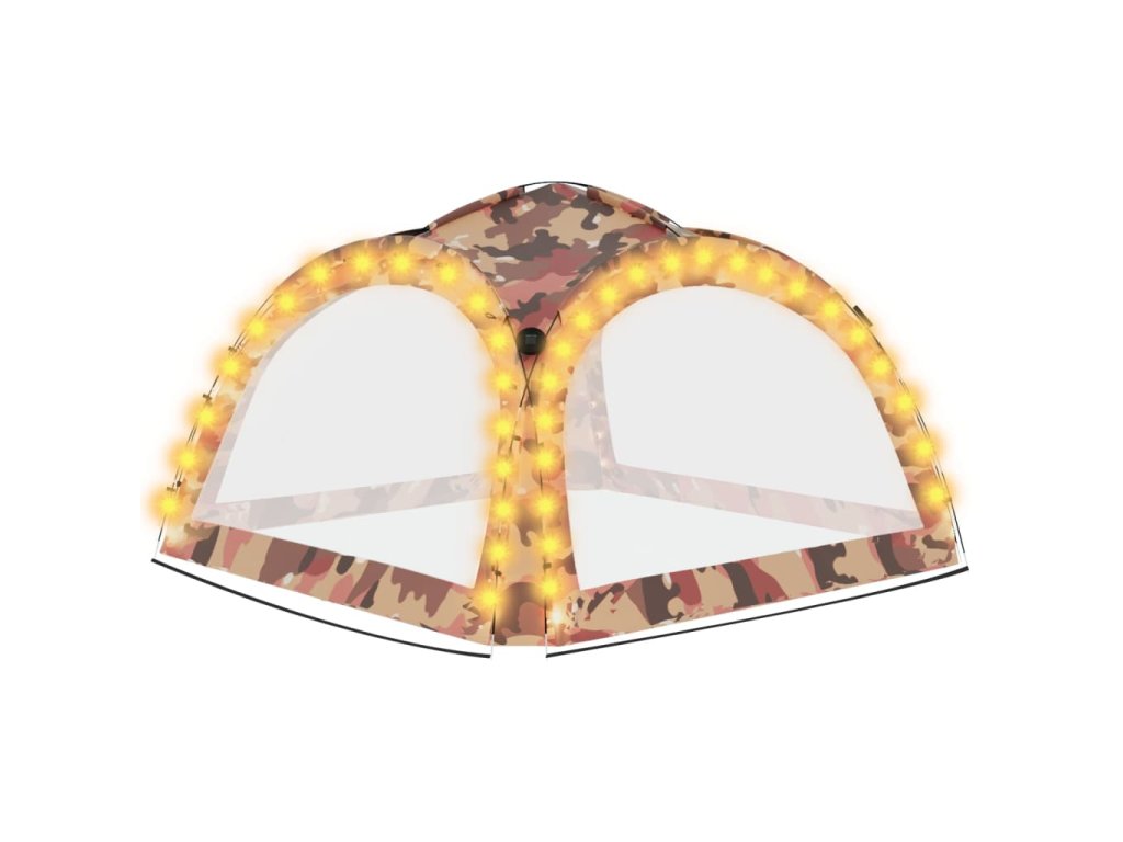vidaXL Párty stan s LED a 4 bočnými stenami 3,6x3,6x2,3 m, maskáčový
