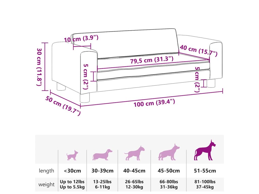 - Pohodlný a mäkký materiál: Pohovka pre domáce zvieratá je čalúnená hrubou a mäkkou penou a potiahnutá umelou kožou, ktorá poskytuje domácemu miláčikovi dostatočnú oporu a vynikajúce pohodlie.