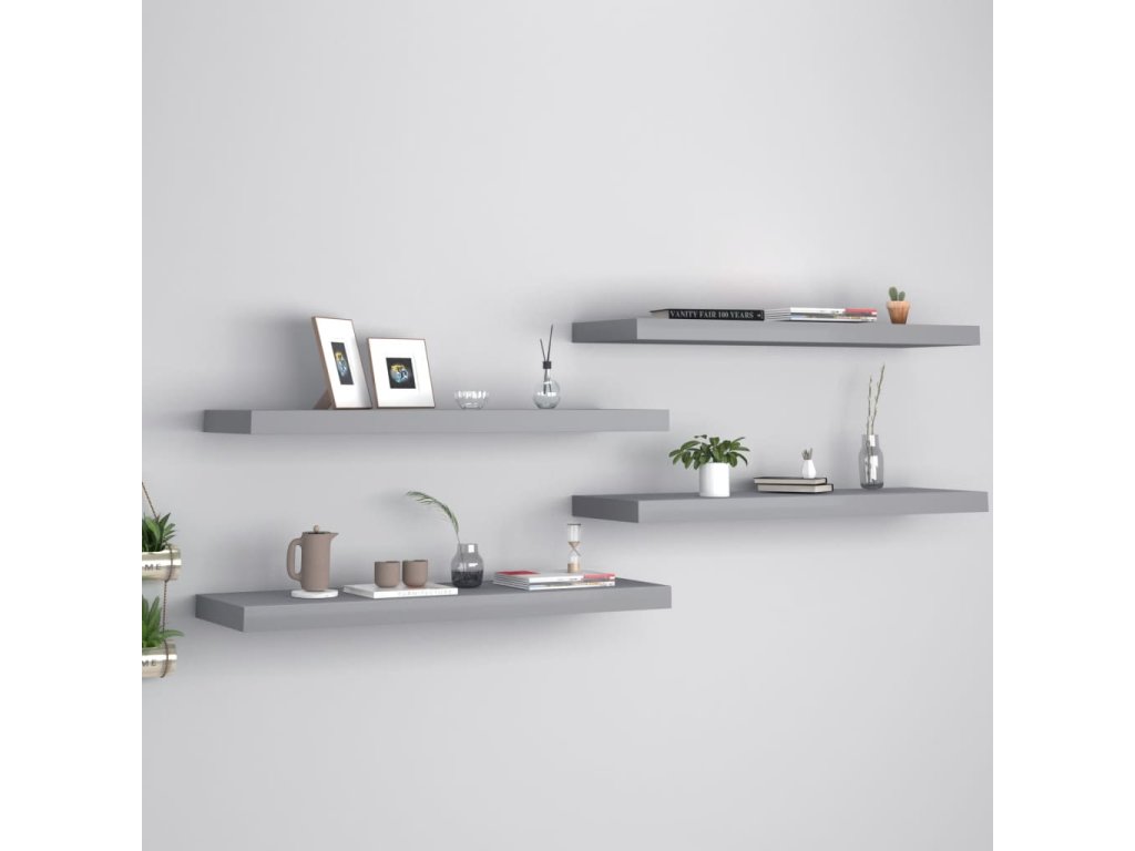vidaXL Plávajúce nástenné police 4 ks, sivé 80x23,5x3,8 cm, MDF